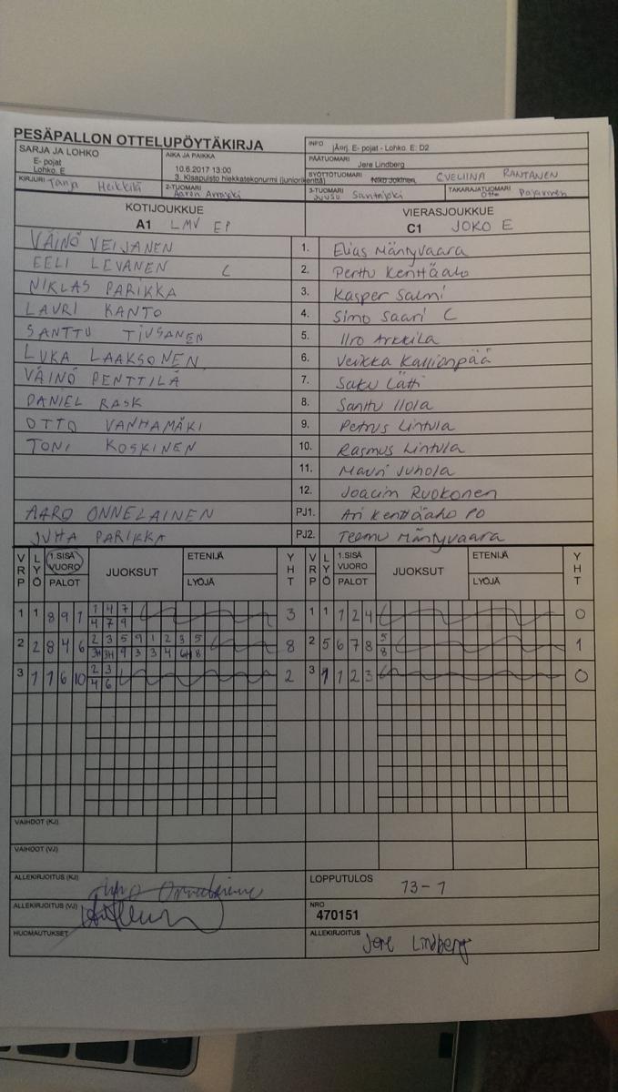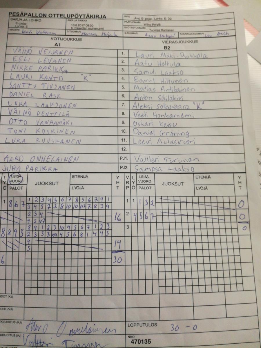 | # | Joukkue | O | V | T | H | JUOKSUT | P |