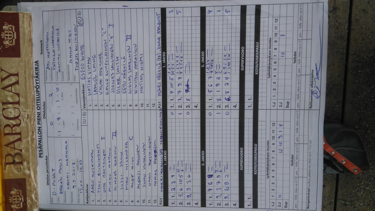 | 520768 | 16.8.2017 18:00 | Kipe06 White | ViPa | 2-0 (8-7, 7-2) | näytä | |