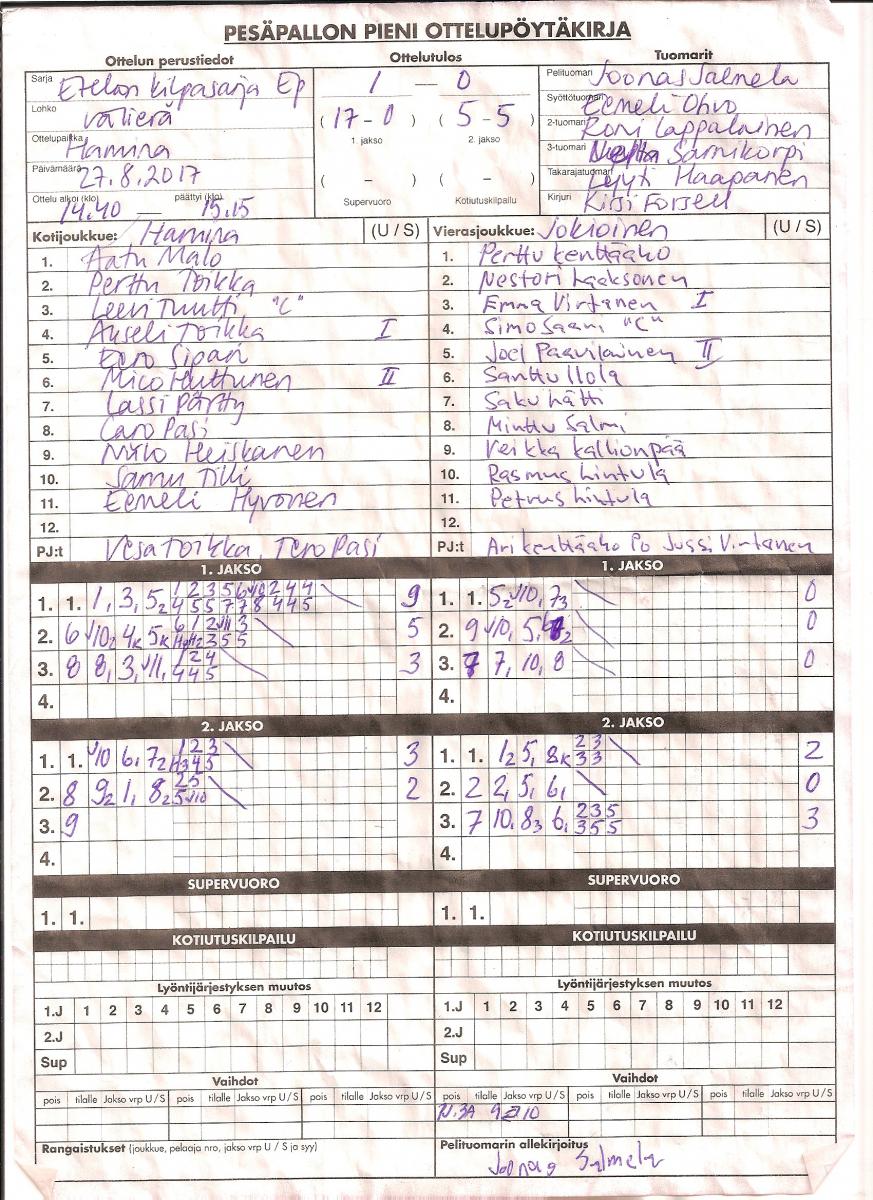 | 522287 | 27.8.2017 14:30 | HP E-pojat | JoKo E | 1-0 (17-0, 5-5) | näytä |