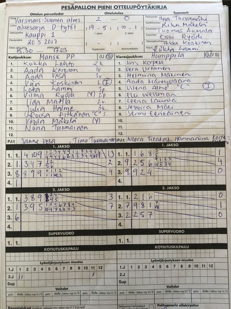 | * 439600 | 8.5.2017 | Pöytyä | Humppila | 2-0 (20-1, 21-4) | näytä |