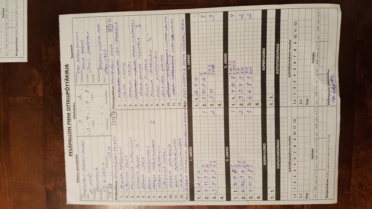 | 439668 | 15.6.2017 | Köyliö | Rauma E | 2-0 (13-2, 7-1) | |
