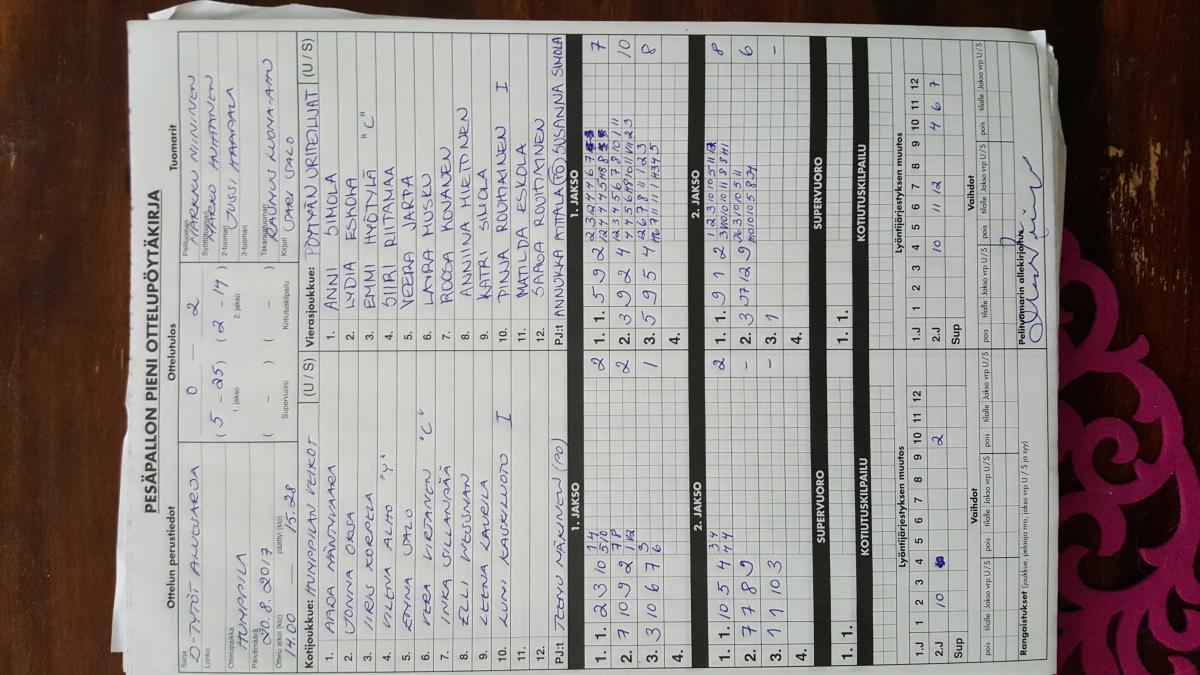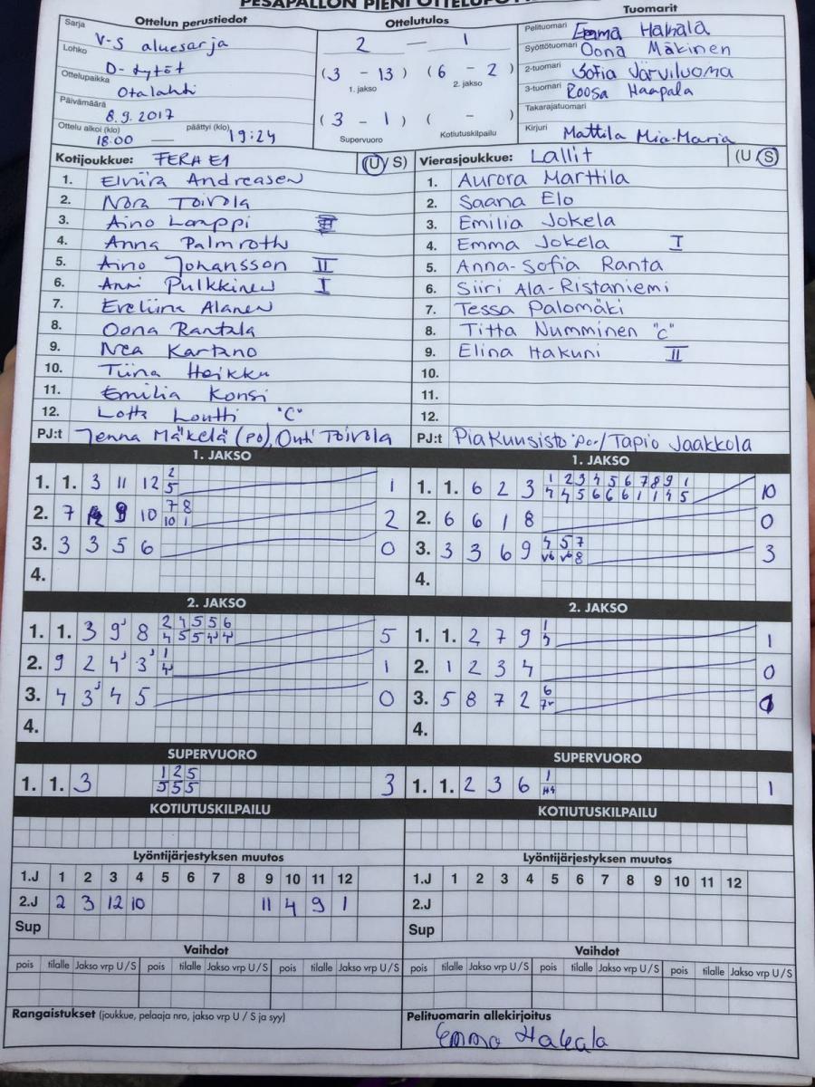 | 518233 | 30.8.2017 | Laitila | Tampere | 2-0 (16-3, 15-10) | |