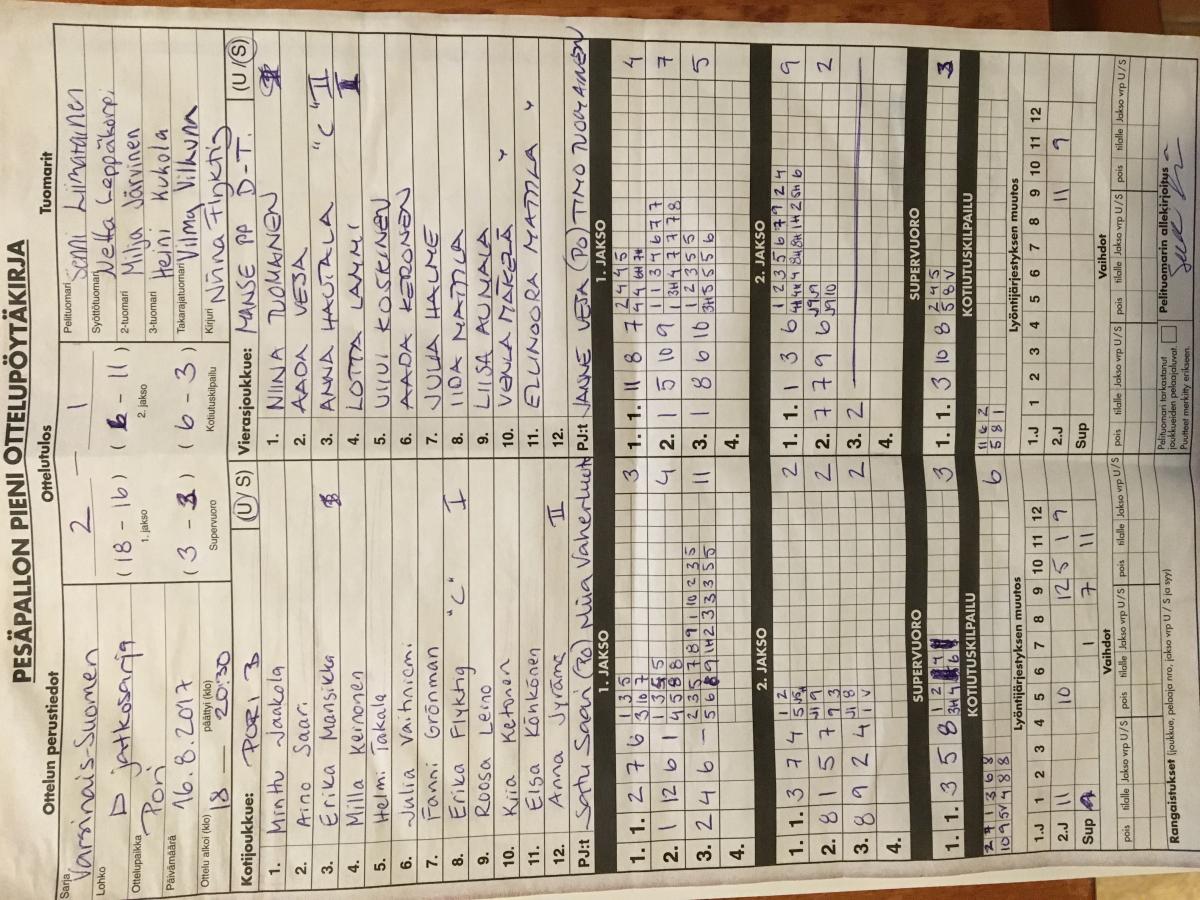| 518259 | 30.8.2017 | Köyliö | Pori | 0-2 (4-12, 6-11) | |