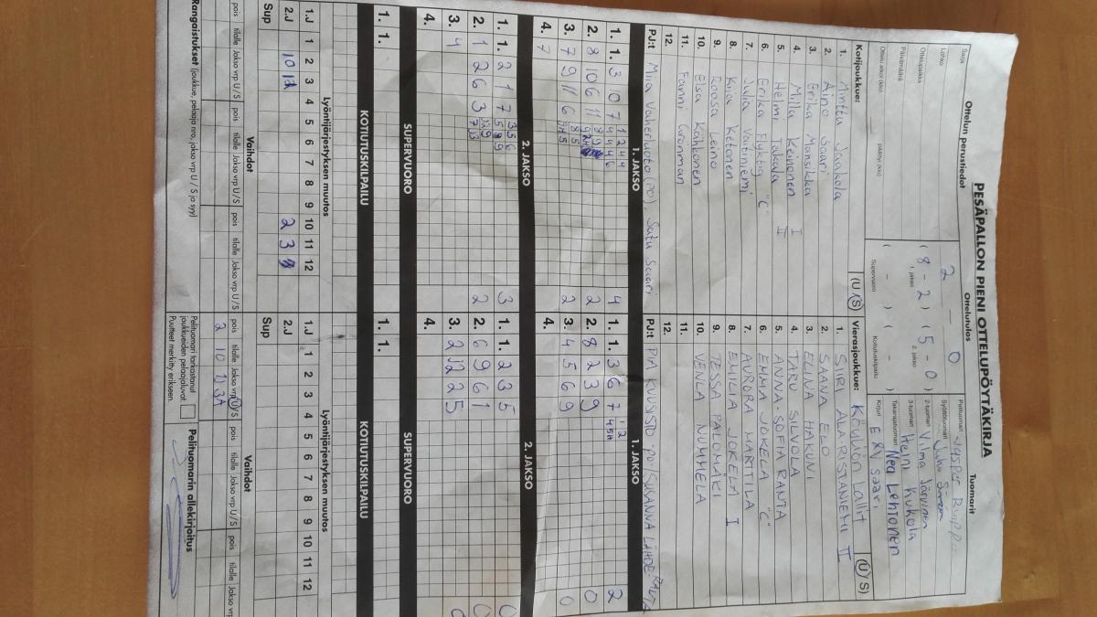- Mynämäki, joukkueen otteluiden tuloksia ei huomioida, syy: Pelaa sarjan ulkopuoiella