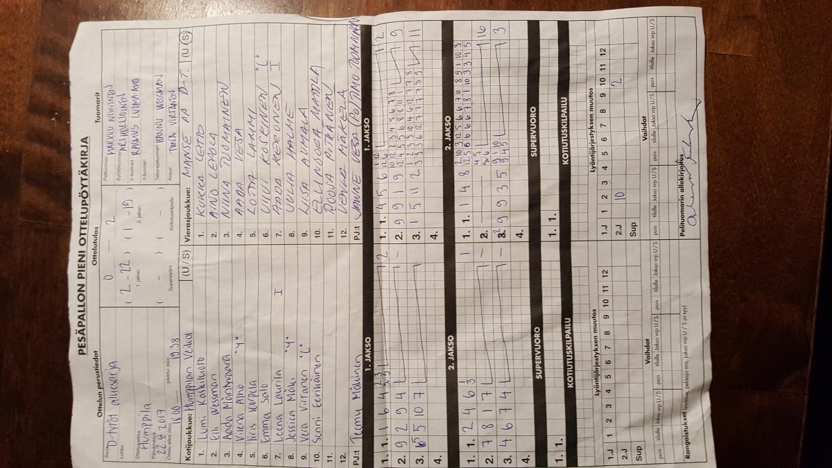 | * 518534 | 23.8.2017 | Laitila | Humppila | 2-0 (29-1, 21-1) | |