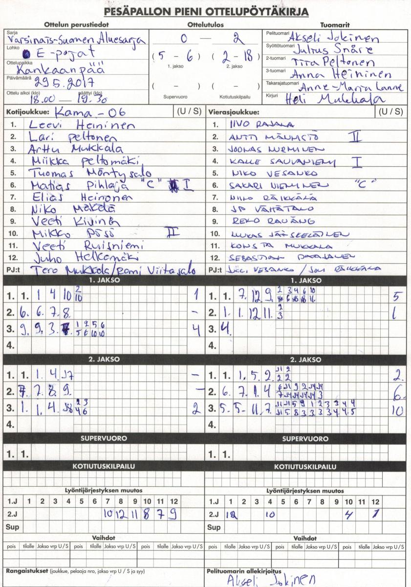 | 438915 | 10.5.2017 | Laitila | Kankaanpää 05 | 0-2 (0-11, 0-24) | |
