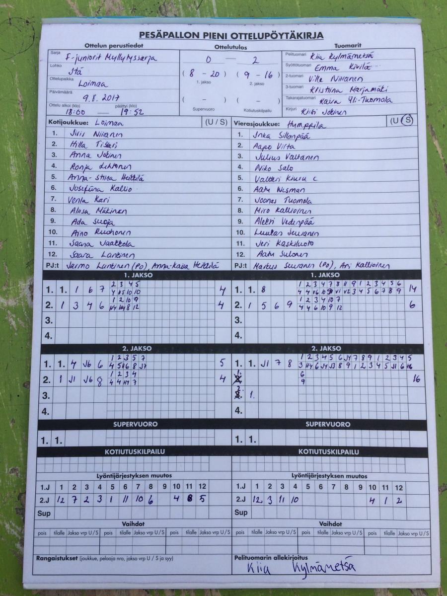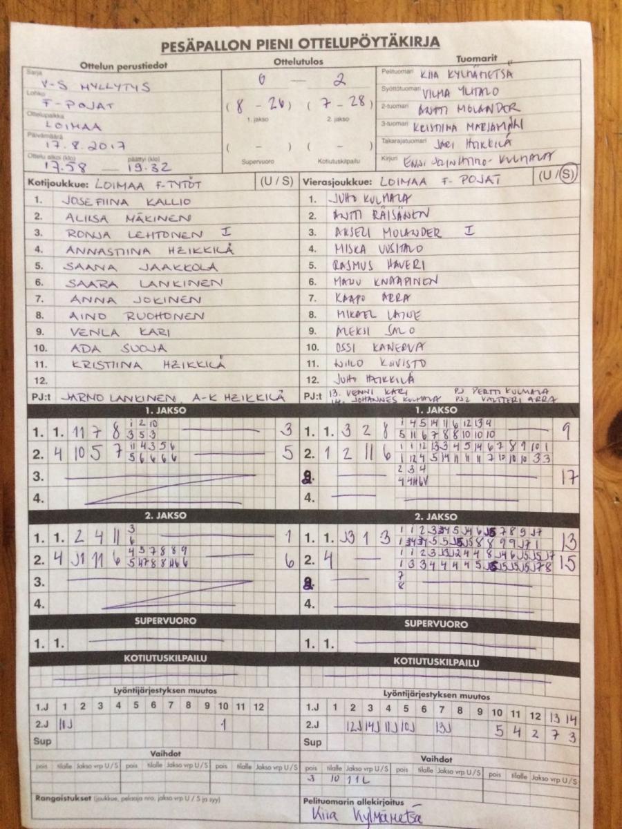 | 517373 | 30.8.2017 | Humppila | Jokioinen | 0-1 (8-9, 3-3) | |