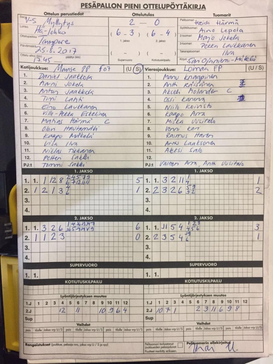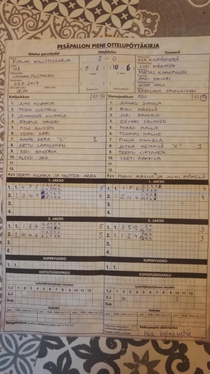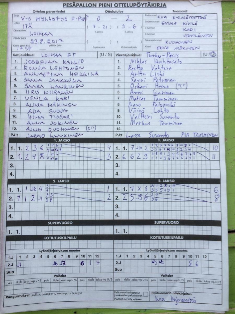 | 517535 | 6.9.2017 | Jokioinen | Loimaa Ft | 2-0 (13-1, 14-1) | |