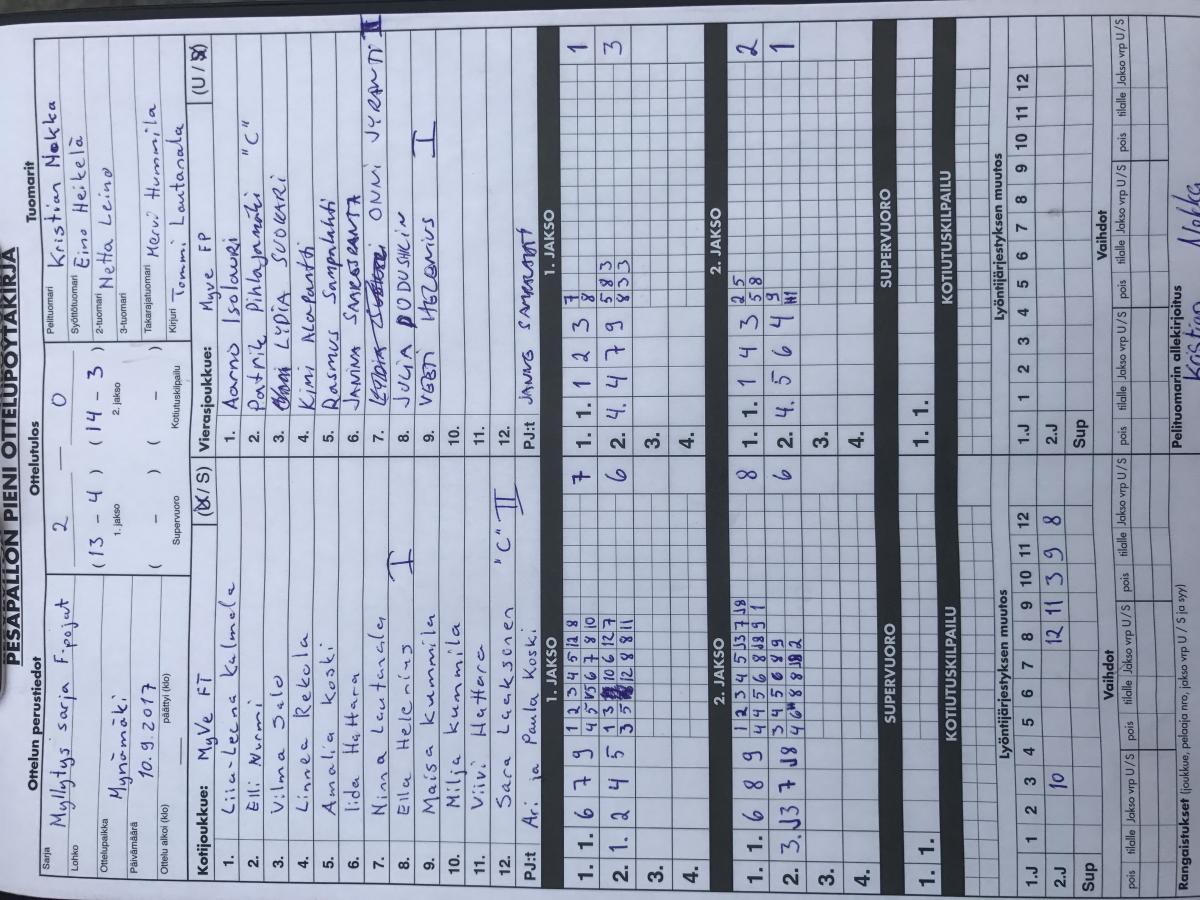 | 517603 | 12.9.2017 | Rusko | Mynämäki Fp | 2-1 (7-4, 9-10, 7-2) | |
